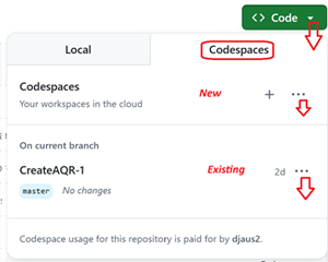 • If previous Codepsace was created, Click on the “+” symbol to create a new Codespace instance on the Master Branch.